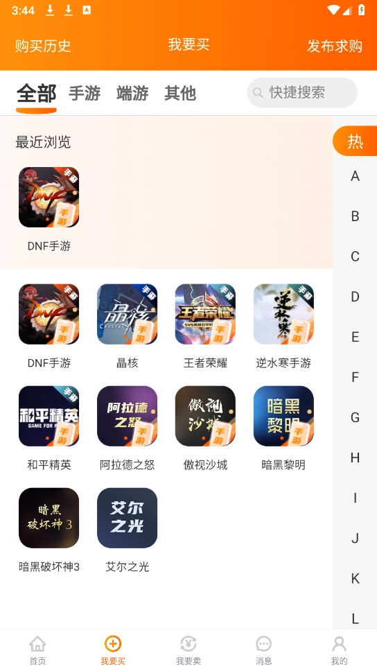 点击“我要买”按钮后,就能借助关键词来搜索游戏账号了。