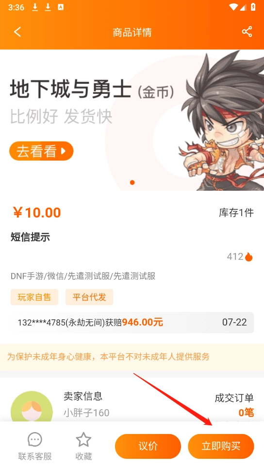 找到需要的账号之后,可以点击“立即购买”即可。