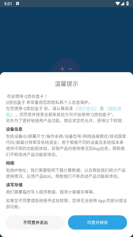 安装Q悠创盒子,同意相关的政策与协议。
