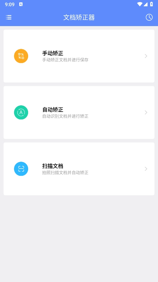 对文档进行扫描和矫正,可以选择自动或手动模式。