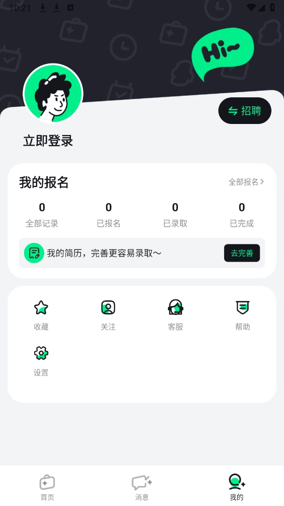完善简历后,您可以在“首页”的岗位列表里挑选自己感兴趣的职位,然后进入“岗位详情”页面点击立即报名按钮完成报名流程。要是您的条件符合雇主的招聘需求,系统会自动弹出雇主的联系方式,您也可以主动进入消息页面去获取商家的联系方式。