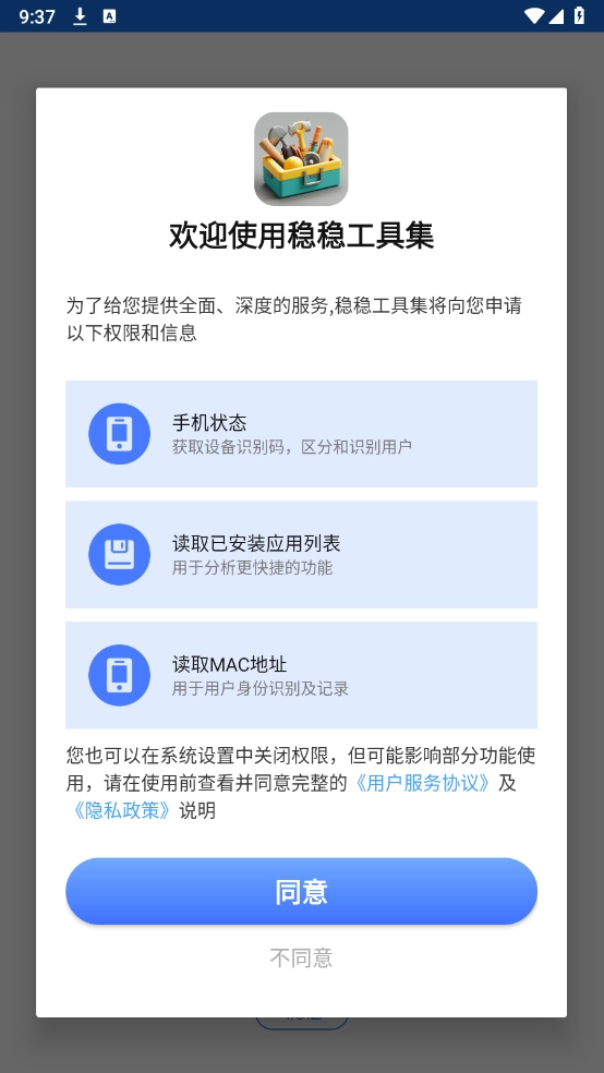 在本站安装稳稳工具集后,查看并同意相关政策与协议。
