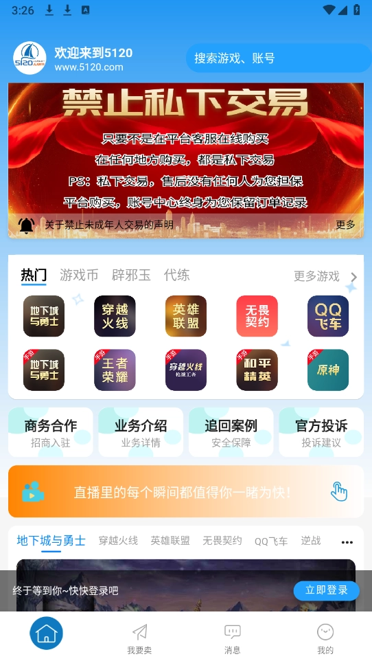 5120游戏平台是个挺棒的游戏账号交易平台,这里有大量的游戏账号资源,像王者荣耀、绝地求生和蛋仔派对等热门游戏的账号都能找到。平台对所有账号都会进行严格审核,只有通过审核的账号才允许发布。除此之外,玩家也能在这个平台上把自己的游戏账号卖出去。