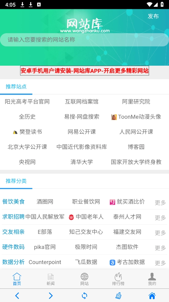 网站库,汇聚了最权威的各类网站资源,涵盖新闻、美食、教育等多个领域。你可以通过关键词快速搜索所需网站,点击即可直接访问,轻松满足不同场景下的上网需求。此外,这里能有效避免你进入垃圾网站,为你营造安全良好的上网环境。有查询需求的话,不妨来这里看看!