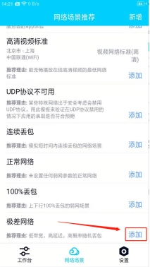 选好要测试的应用后,界面会提示你去网络场景添加模板数据,点击界面下方的【网络场景】就能进入网络场景推荐页面