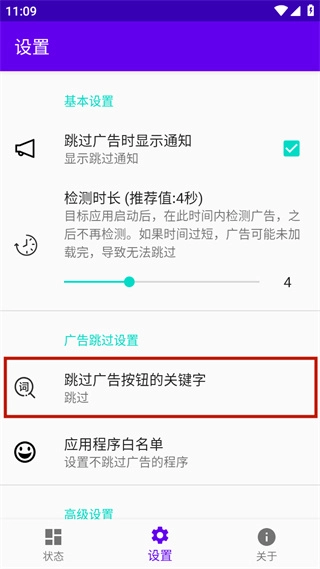优化了通过关键字跳过广告的功能实现,现在可以跳过更多类型的广告了