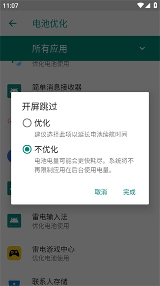 安卓系统的电池优化功能可能会对应用运行造成限制,所以我们得进入电池优化设置界面,把对应的应用调整为不进行优化的状态。
