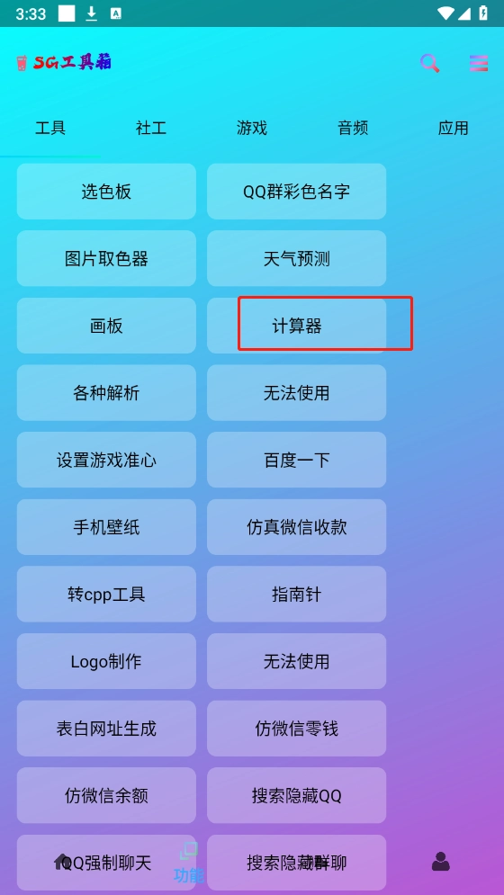 SG工具箱是一个涵盖多种资源的综合分享社区,这里有各类小游戏、常用工具,还有音乐搜索与解析等功能,所有资源均免费提供。平台持续更新优化,无需复杂操作,打开就能直接使用。资源分类清晰细致,可满足用户多样化的使用需求。它占用空间小,但功能十分丰富,能为用户的生活、学习和工作带来诸多便利。