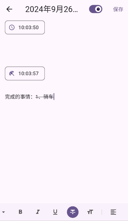 可以自由选择日记对应的时间,首页展示的日记同样按照日期顺序排列,因此这款软件也能当作提醒工具使用——每次打开它,就能清楚看到自己的待办事项,不容易出现遗漏的情况。