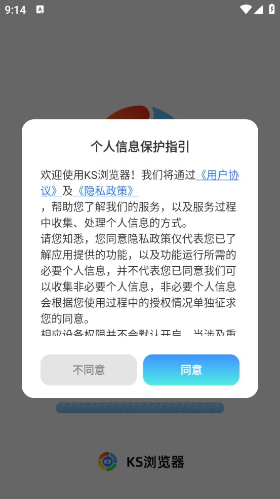 首先在本站完成KS浏览器的安装,查看并同意相关的政策与协议。