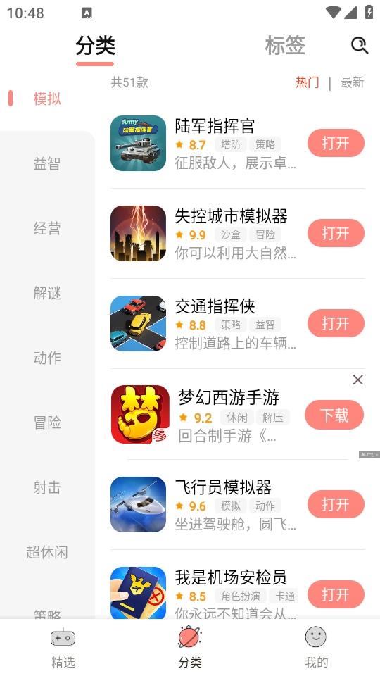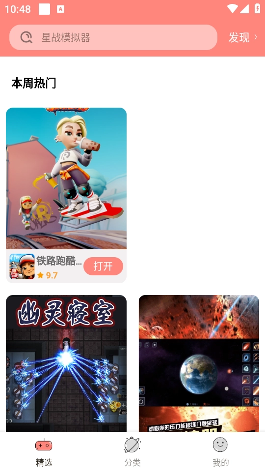 进入之后,便能看到精选与分类板块汇聚了海量游戏资源。