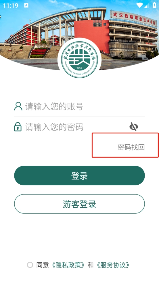 好铁院门户进入,点击“密码找回”。