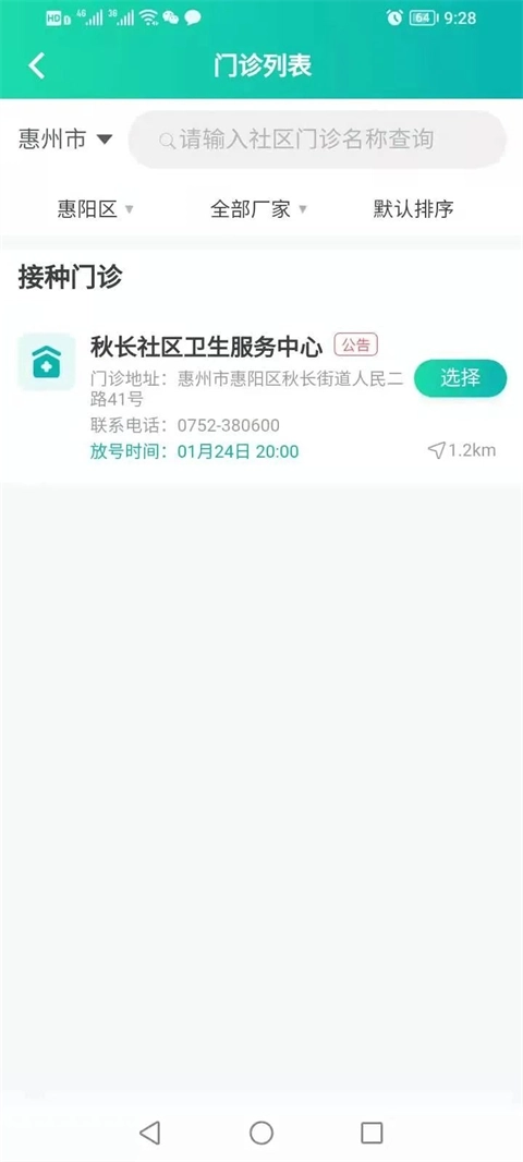 然后就可以选择接种的门诊了。