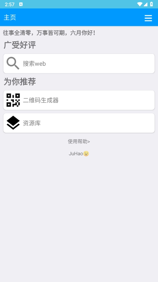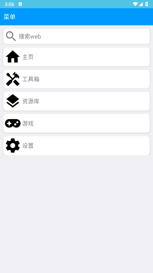 点击页面右上角的按钮后,弹出的列表里包含了工具箱、游戏等多个资源分类板块。