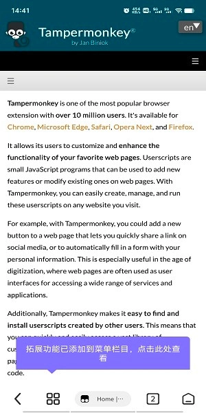 安装成功后,即可点击查看扩展功能,也就是插件的相关说明。