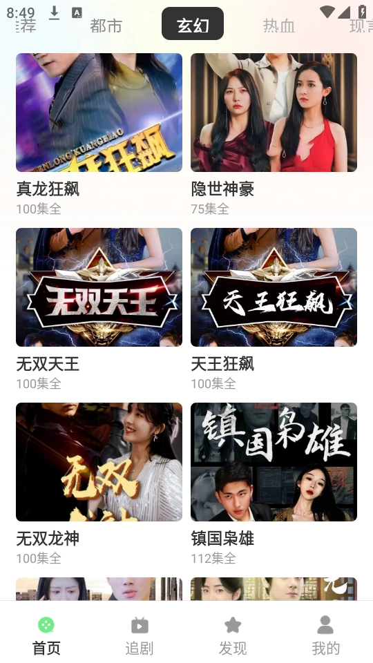 进入首页后,能看到丰富多样的短剧类型,像热血、动作、都市等都包含在内,可通过上下滑动来浏览这些内容。
