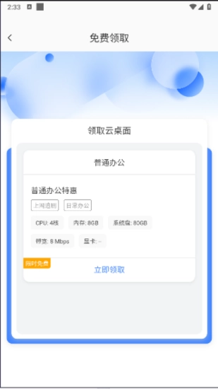 点击领取进入就可以领取一台普通办公版本。