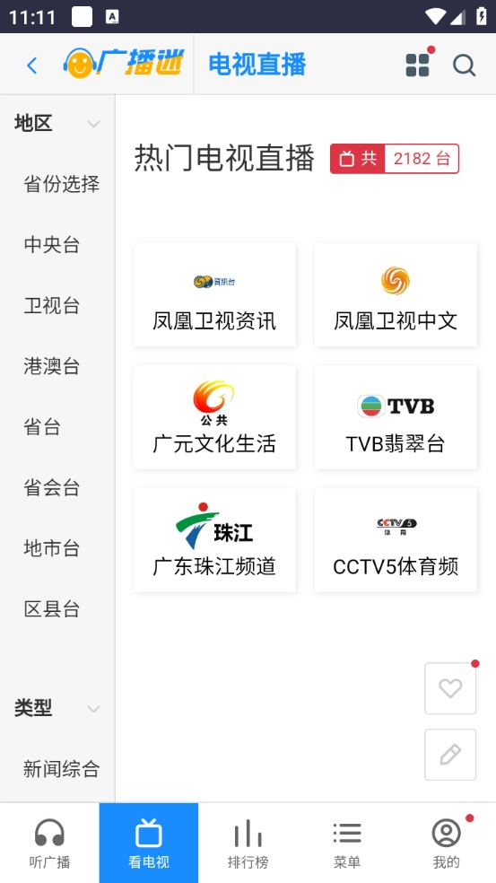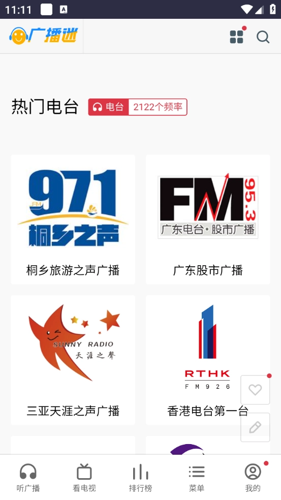 进入之后,“听广播”栏目能看到省会台、地市台以及港澳台等类别。