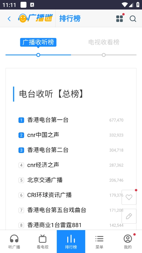 可以借助排行榜查看电台的收听榜单,从而知晓当下的热门内容。