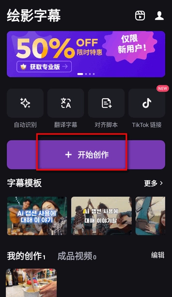 在绘影字幕的编辑界面中,找到添加字幕的选项。