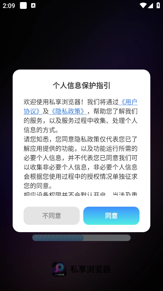 用户需在本站完成私享浏览器的安装,并查看且同意隐私政策及用户协议。