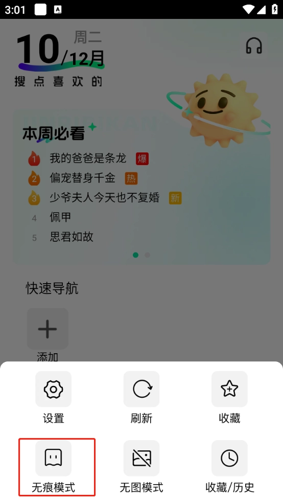 点击“无痕模式”即可。