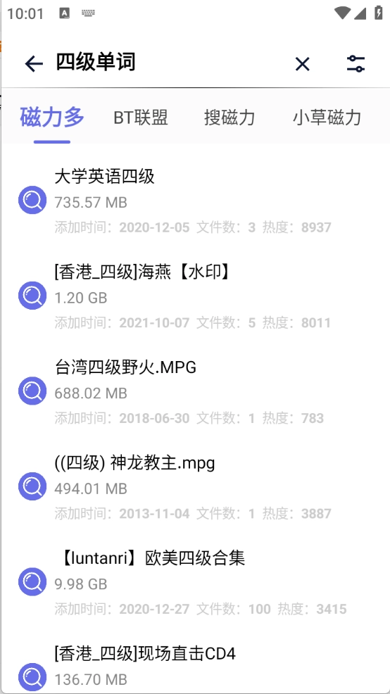 这款磁力搜索软件十分值得推荐,它作为强大的资源搜索工具,你所需的各类资源基本都能在这里找到。