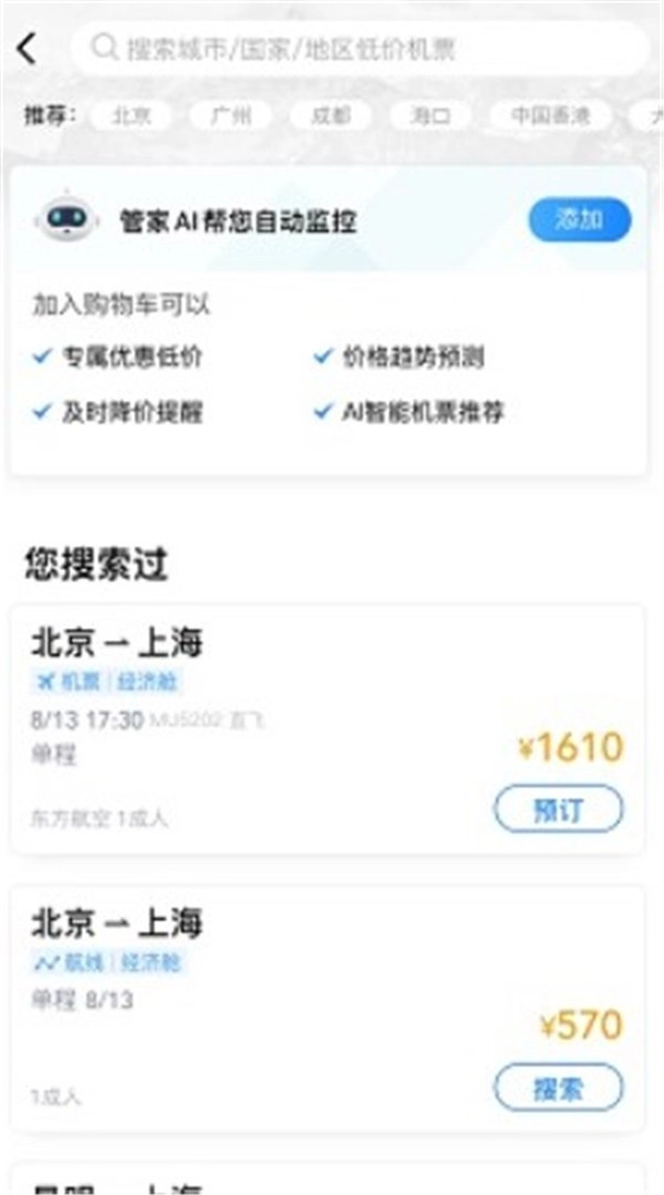 它搭载了智能推荐算法,能够依据用户的历史搜索记录精准推送最优航班。