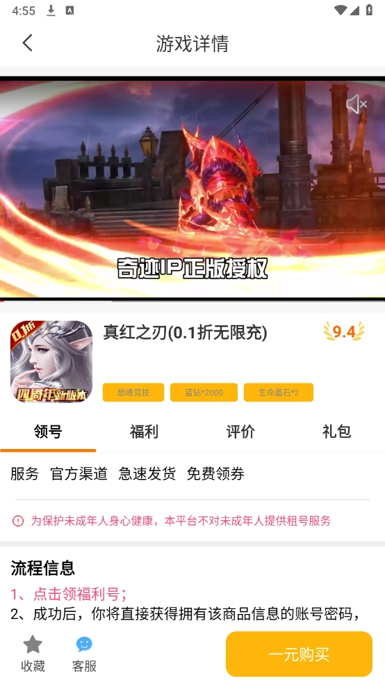打开你想玩的游戏后,点击“一元购买”按钮就能畅玩该游戏了。