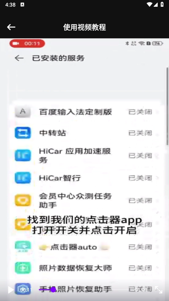 找到我们的点击器,打开开关并点击开启