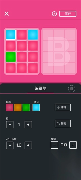 还可以选择设置按钮来编辑当前打击垫的颜色、音调等参数。