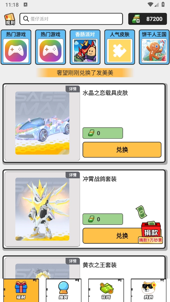 在福利中心,挑选心仪的游戏皮肤并点击“兑换”按钮,便有机会将其收入囊中。