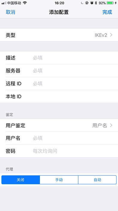 3、在这里选择类型、填写相关的服务器、ID、用户名等即可完成。