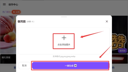4、然后点击添加图片再按一键生成按钮。