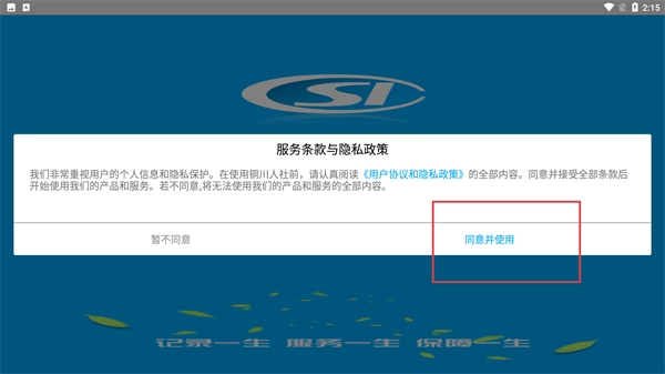 1、阅读【服务条款与隐私政策】后,点击【同意并使用】按钮,即可进入后续功能页面。