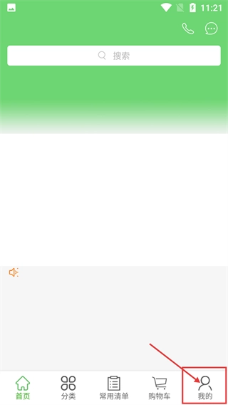 在这个应用的首页界面,点击底部导航栏里的【我的】选项,就能进入对应的个人中心页面,首页也包含搜索栏这类基础功能区域。