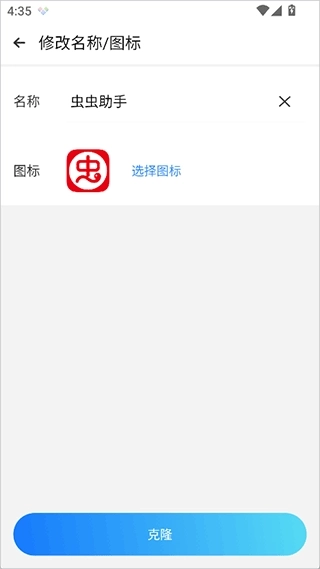 2、接着从手机里挑选想要克隆的应用或游戏,在克隆操作前,能够给即将克隆的应用或游戏重新命名,图标也可以更换样式。