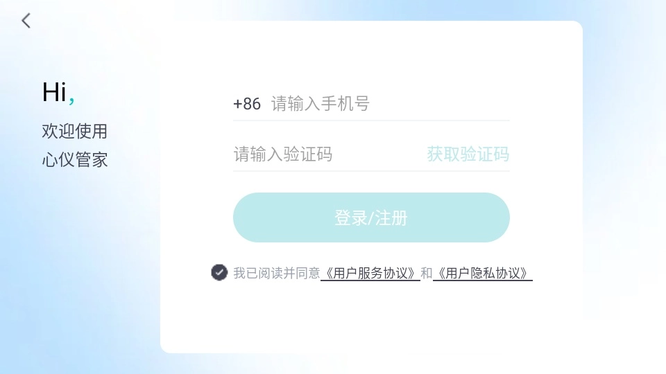 2.在软件登录界面填写手机号并输入验证码后,点击“登录/注册”按钮即可进入程序
