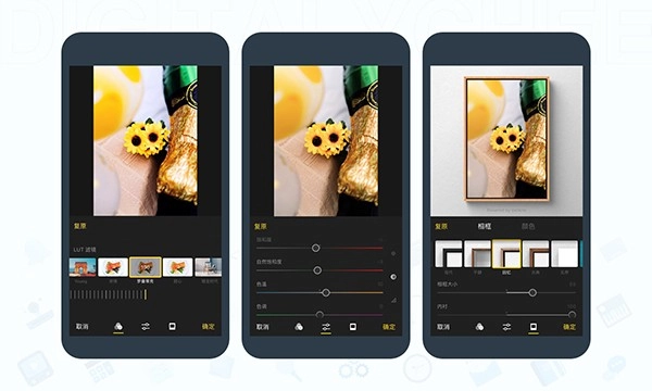 支持3DLUT调色技术,能够导入.cube、.3dl格式文件来打造专属色调风格,还能便捷地对数百种滤镜进行分类管理。
