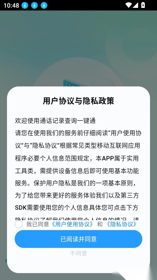 1、首先打开应用点击“已阅读并同意”按钮进入中。