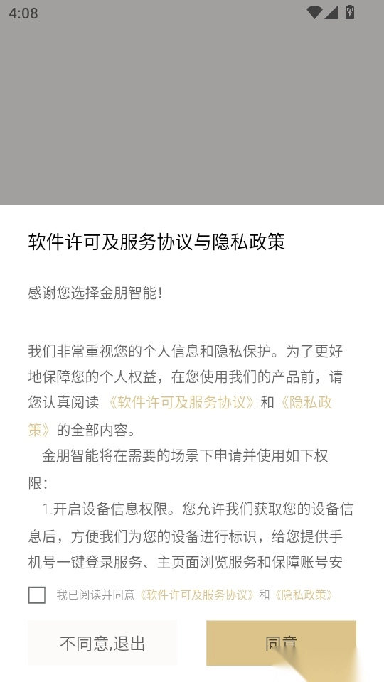 1. 首先打开软件,仔细阅读协议和隐私政策,阅读完毕后点击“同意”按钮进入下一步