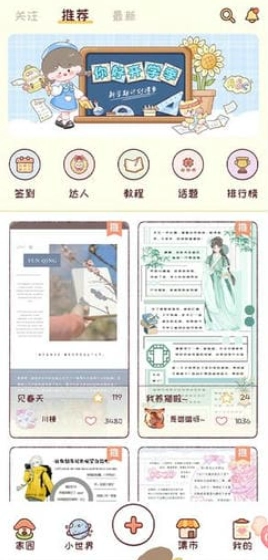 5、小世界频道会呈现其他玩家的创作内容,在浏览这些内容时,你可以从中获取灵感,从而提升自己的手账设计思路。