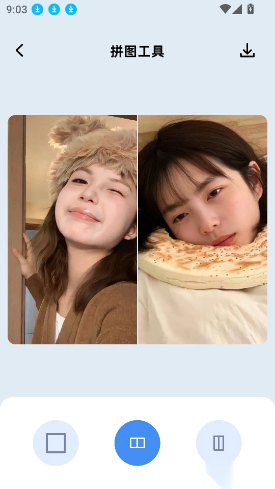 5、这样就能开展图片拼接操作了,点击右上角的“”图标按钮即可完成保存。
