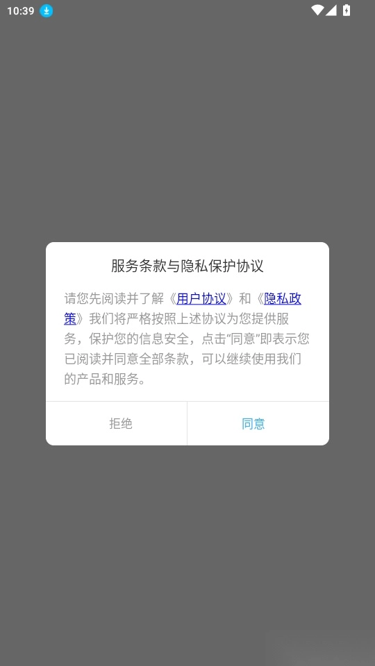 1. 启动软件后,阅读《服务条款与隐私保护协议》,点击“同意”按钮进入后续操作。