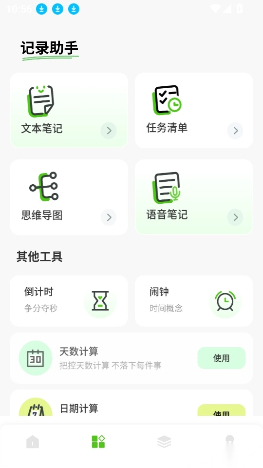 为用户配备了实用的工具箱,里面包含倒计时、闹钟、计算器等多种工具,可随心选用。