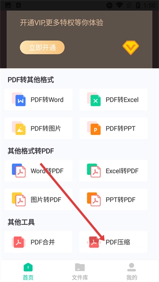 在工具首页的“其他工具”分类里点击【PDF压缩】选项,即可进入PDF压缩的文件选择页面。
