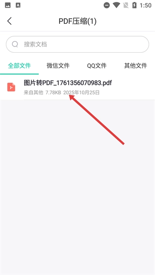 在文件选择页面里,挑选好要进行压缩的目标PDF文件(例如“图片转PDF_1761356070983.pdf”),就能进入压缩模式的选择界面了。