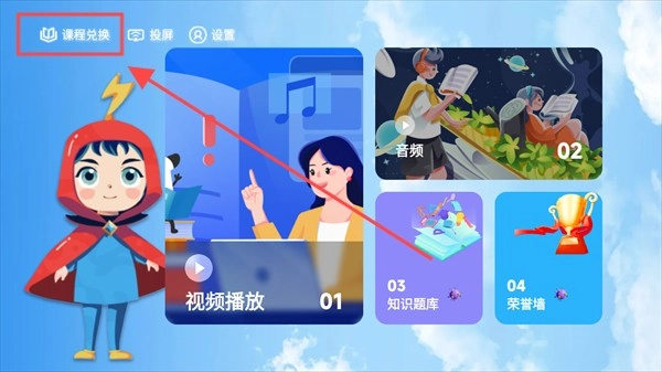 1、打开万物指南后,在软件首页界面的左上方找到“课程兑换”选项按钮,点击该按钮进入相关页面。