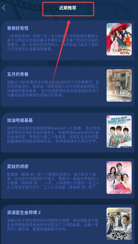 2、进入近期推荐页面后,根据提供的选项挑选影片,点击对应影片就能进入播放界面。