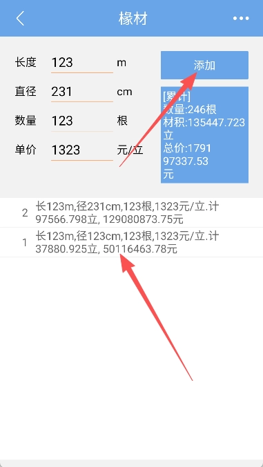 - 功能:输入小头直径、木材长度和根数后,系统会自动计算材积;长按可删除单条记录,按下菜单键能一键清空所有条目。